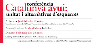 8M. 18H. Col·legi de Periodistes. CATALUNYA AVUI: #UNITATIALTERNATIVES. Conferència de Jordi Miralles amb la presentació de Manel Mateu